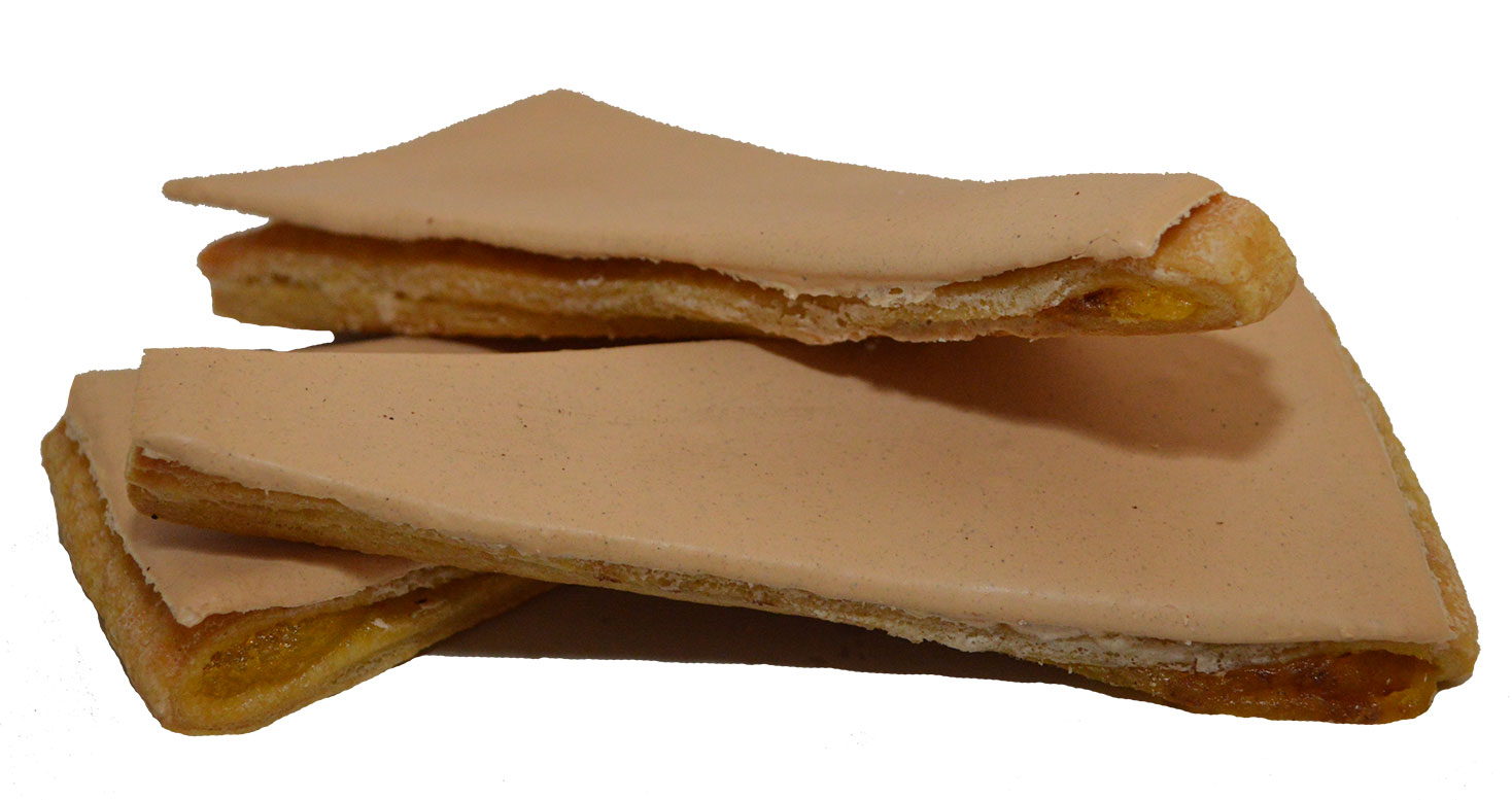 pastel de massa folhada, típico da doçaria tradicional portuguesa, em forma de triângulo isósceles, com recheio de doce de ovos e coberto com glacê real